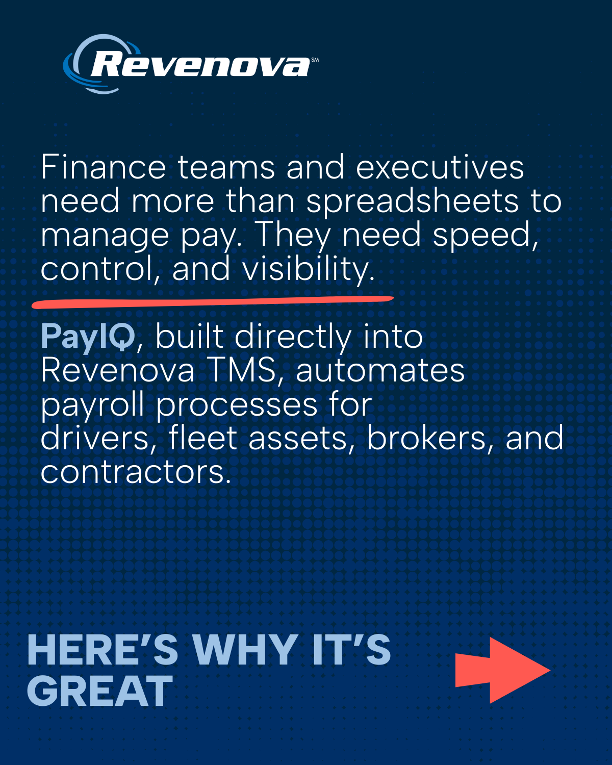 PayIQ is now available to all Revenova TMS customers. To schedule a demo or discuss implementation, contact your Revenova Customer Success Manager or visit www.revenova.com.